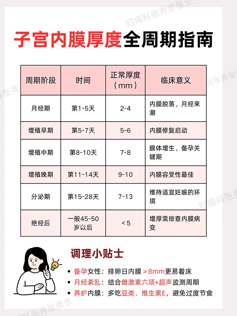 ①、分泌早期:月经来潮前15-19日,此时子宫内膜正常厚度会超过5mm;